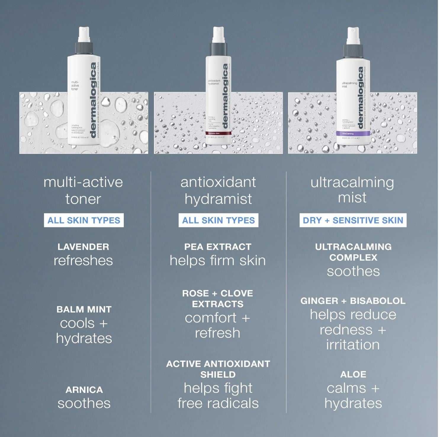 תרסיס לחות עדין במיוחד. מכיל אלוורה ומספר רב של מרכיבים סופחי לחות להחלקה של העור. מיועד לשימוש לאחר ניקוי הפנים מתחת לקרם הלחות. מעולה לרענון עור הפנים באמצע היום מעל המייק אפ.